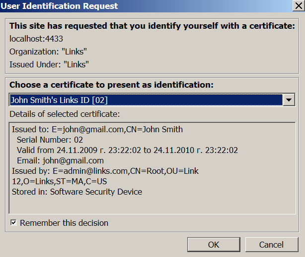 2. Enter for User's WebID an user's WebID for which user is created WebID certificate for ex. http://localhost:8896/dataspace/person/john#this