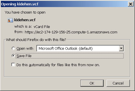- after successful authentication, you will be able to save or view the shared resource: kidehen.vcf.