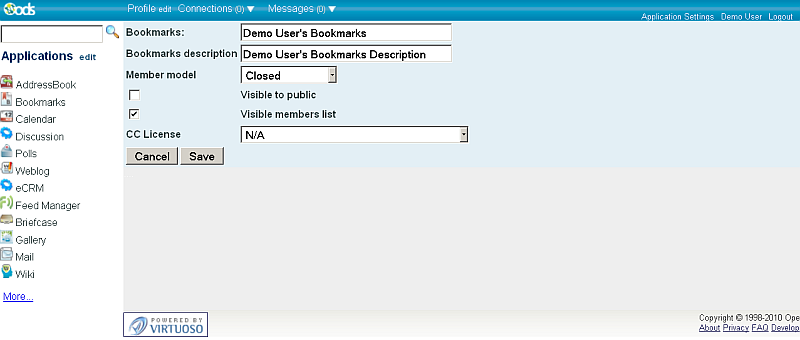 - As result a new Bookmark instance will be created with owner the logged in ODS user.